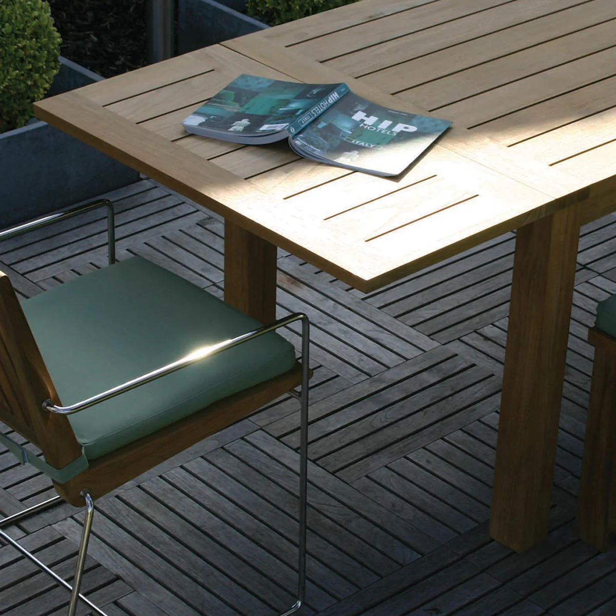 The Antibes teak canteen style tables are simple and versatile, they work perfectly with the Antibes teak trestle benches for informal family or alfresco dining.