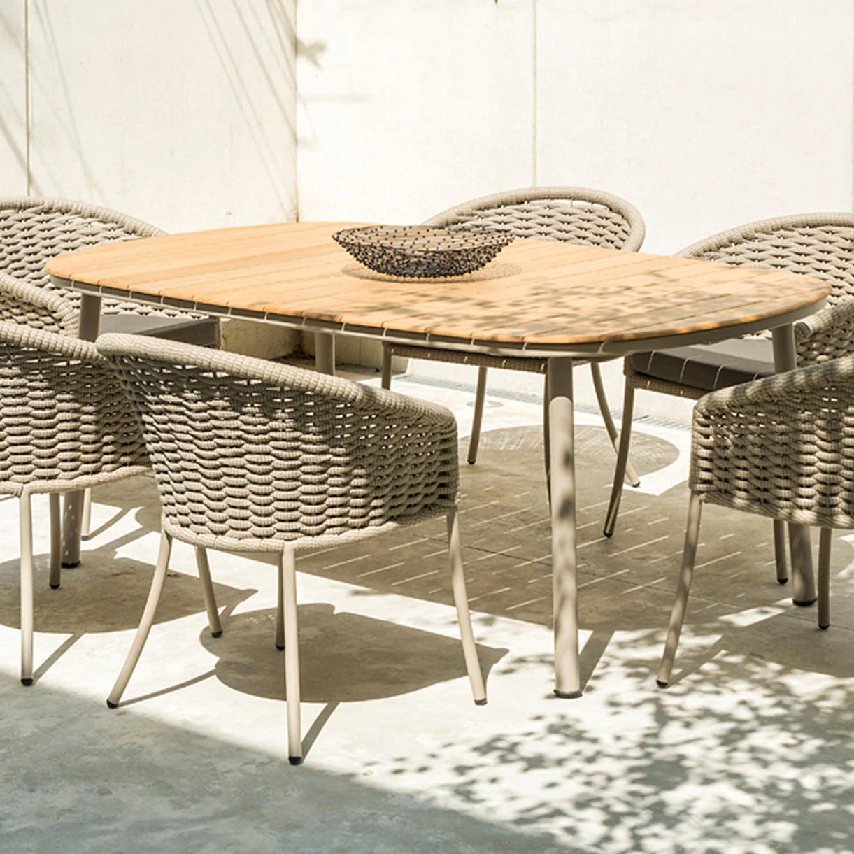The powder-coated aluminium frames are in in either charcoal grey or sand coloured beige, with a choice of Roble wood or HPL tops.