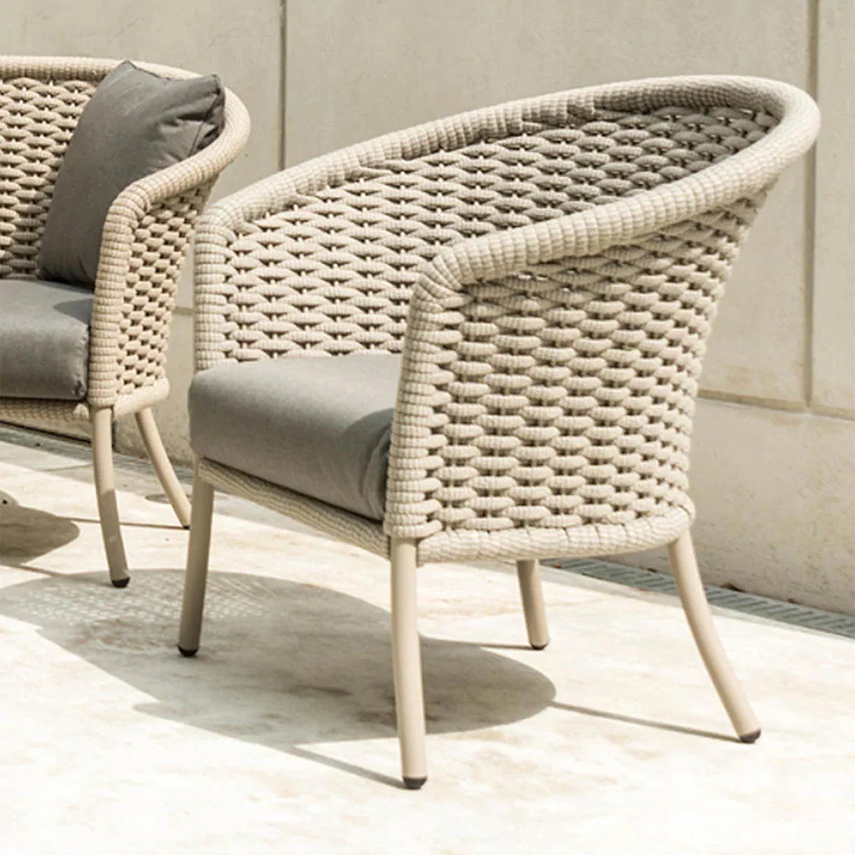 The delightful Cordial collection by Alexander Rose is a gorgeous mix of powder coated aluminium frames with all-weather corded rope weave for soft to the touch comfort.