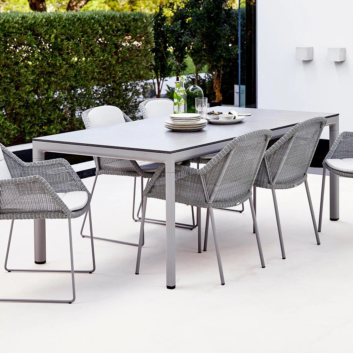 The Drop dining tables combines an urban styled ceramic table top, balanced with a softer shaped aluminium frame. The Drop collection is inspired by a drop shape that gives a profile with both sleek edges and soft curves.