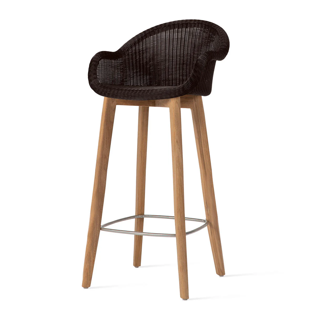 A delicately woven bar stool chair with either a warm teak base or sleek steel base for a contemporary mix of materials.