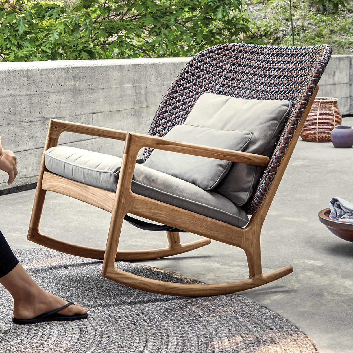 Reminiscent of relaxed colonial styling on open terraces, Kay rocking chairs are elegant comfortable with beautiful, natural teak frames.