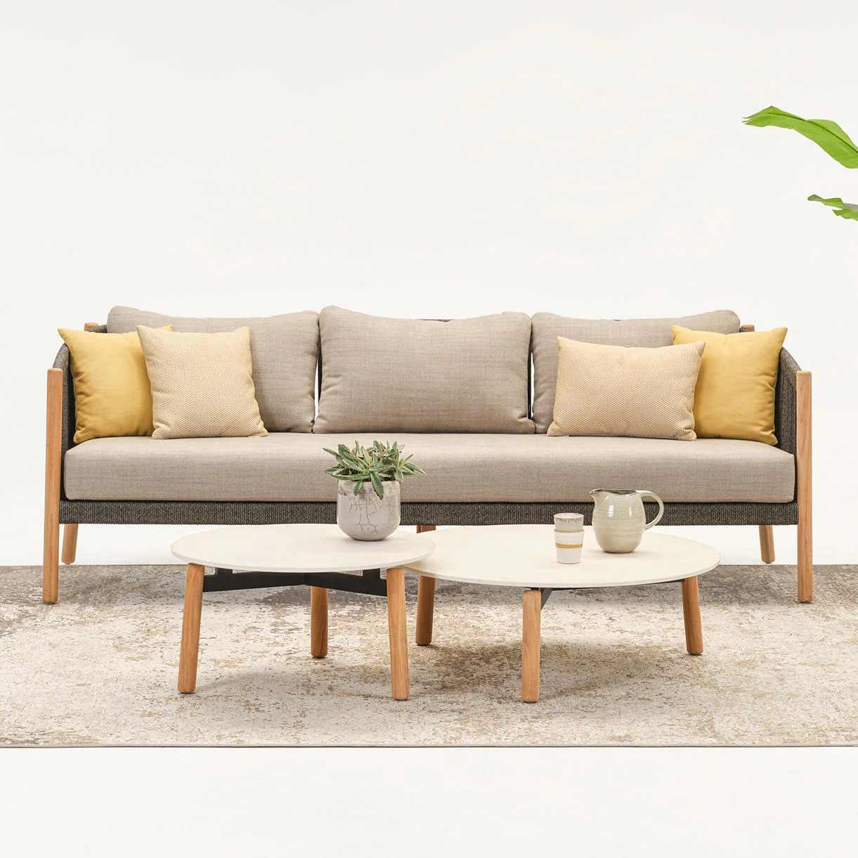 The anthracite rope and warm teak match perfectly with the Lento coffee and side tables.