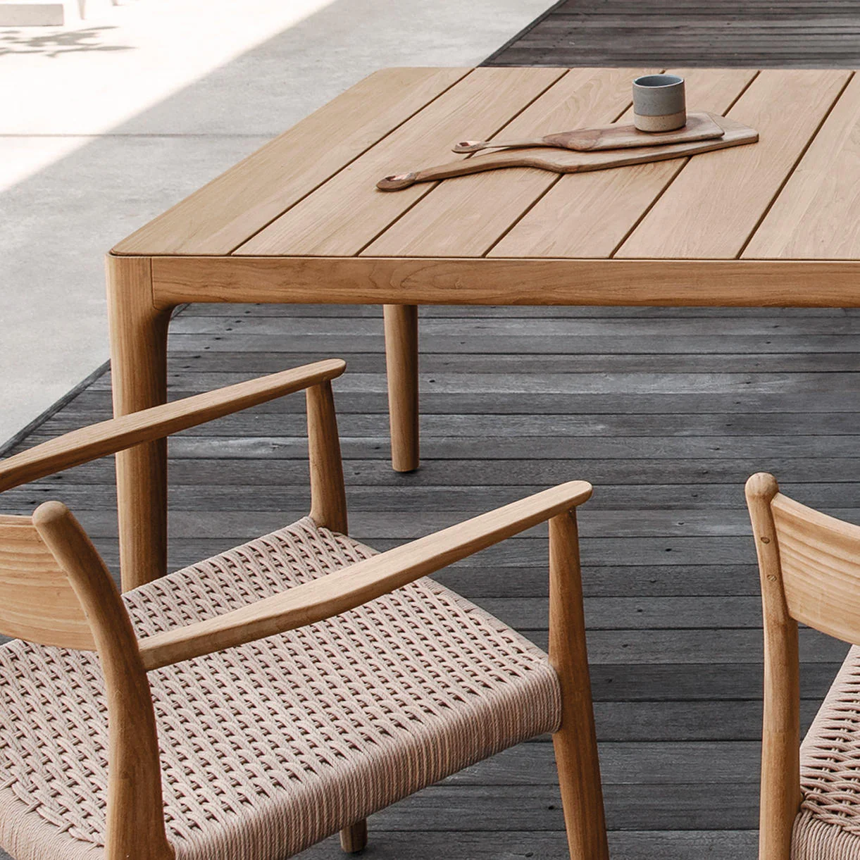 Lima by Gloster epitomizes the fusion of natural and tactile elements into a singular expression of refinement. Crafted from premium-grade plantation teak, the Lima square dining table features a solid construction with a slatted teak top, offering seating for either 2 or 4 people.