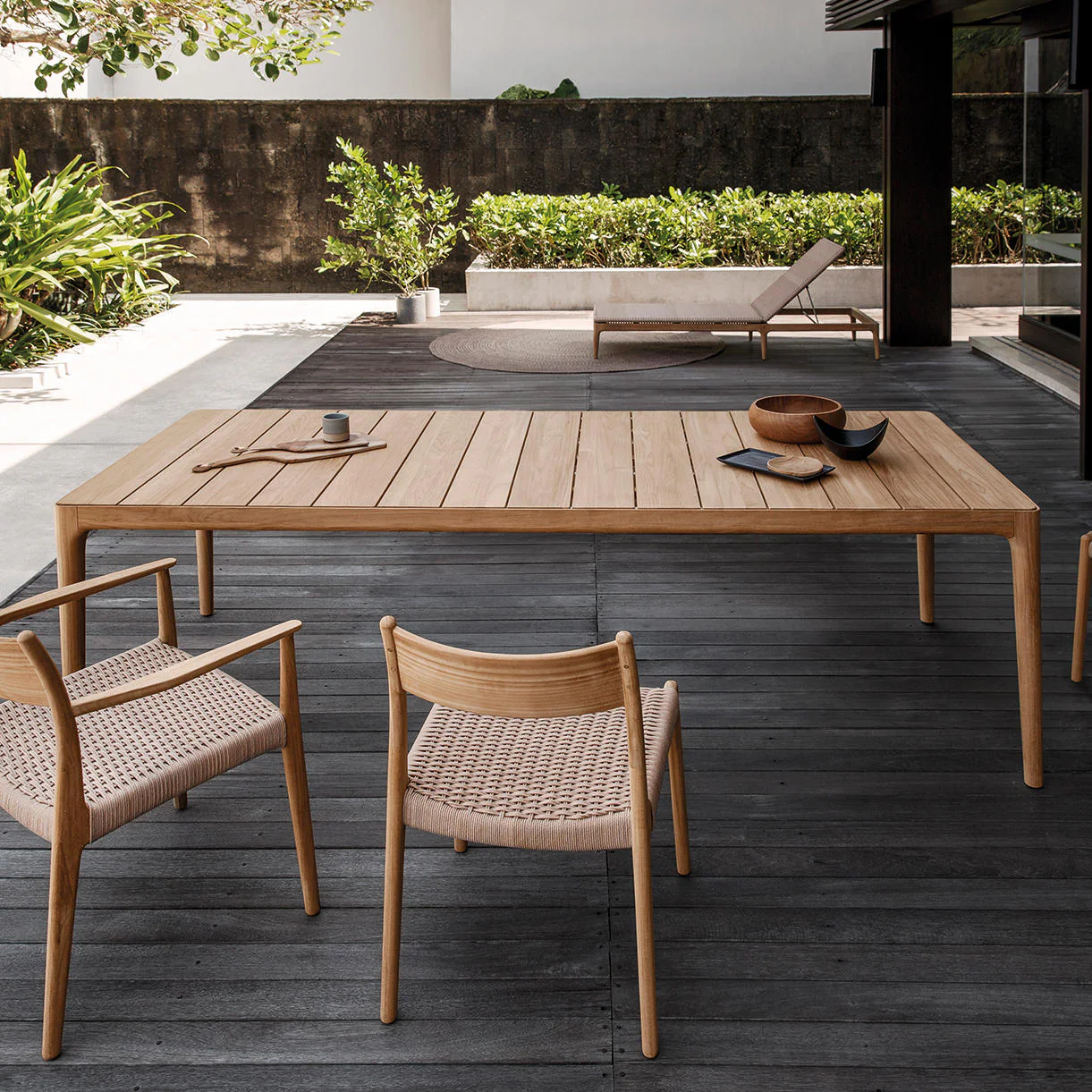Lima by Gloster epitomizes the fusion of natural and tactile elements into a singular expression of refinement. Crafted from premium-grade plantation teak, the Lima dining table features a solid construction with a slatted teak top, offering seating for either 6 or 8 people.