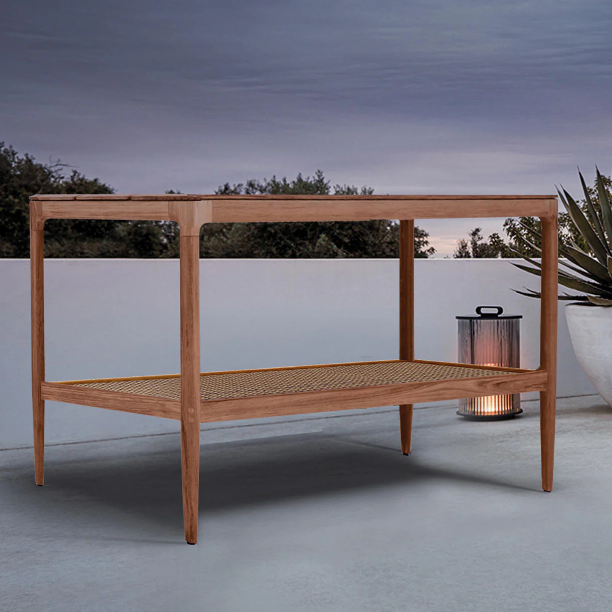 The Lima serving table is the perfect accessory for outdoor dining. The table acts a secondary outdoor kitchen, giving the facility to bring food out to the patio without infringing on the dining table.