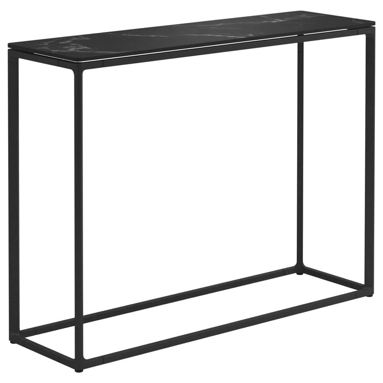 The tables have a choice tops including Teak, Pumice, Bianco or Nero and a powder-coated frame in either meteor or white.