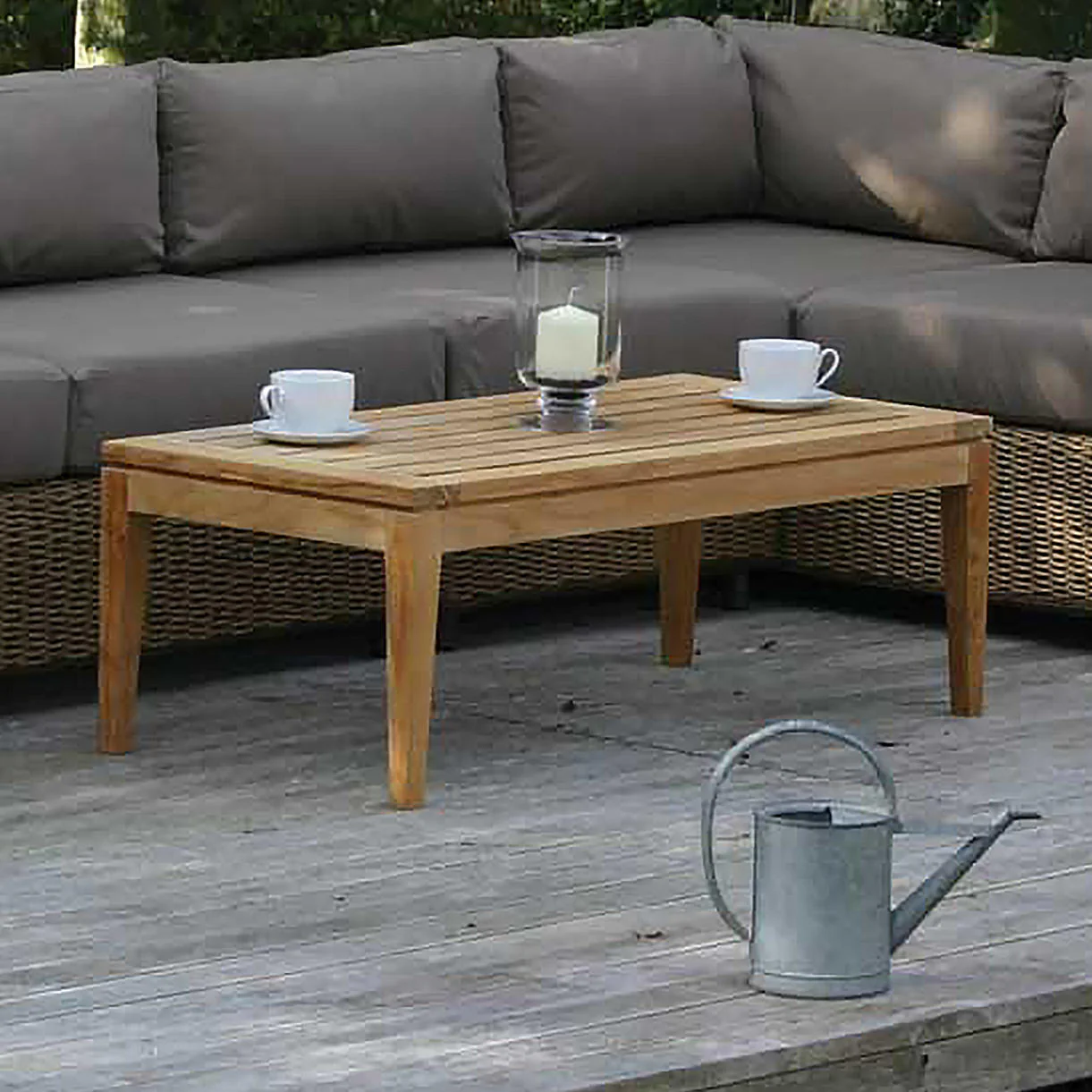 The beautiful plantation teak occasional table works beautifully with other pieces in the Menton collection.