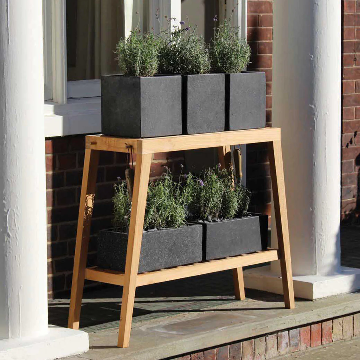 With a practical slatted top this plantation teak plant stand is perfect for conservatories, terraces and kitchen gardens.