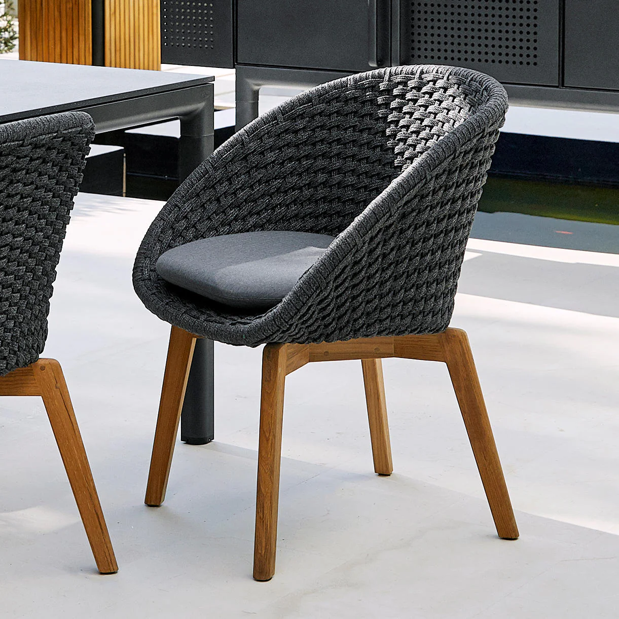 The chair is a beautiful visual piece of furniture with high comfort. The Cane-line Soft Rope is practical and suitable for outdoor use in all climates because it is both temperature and UV resistant.