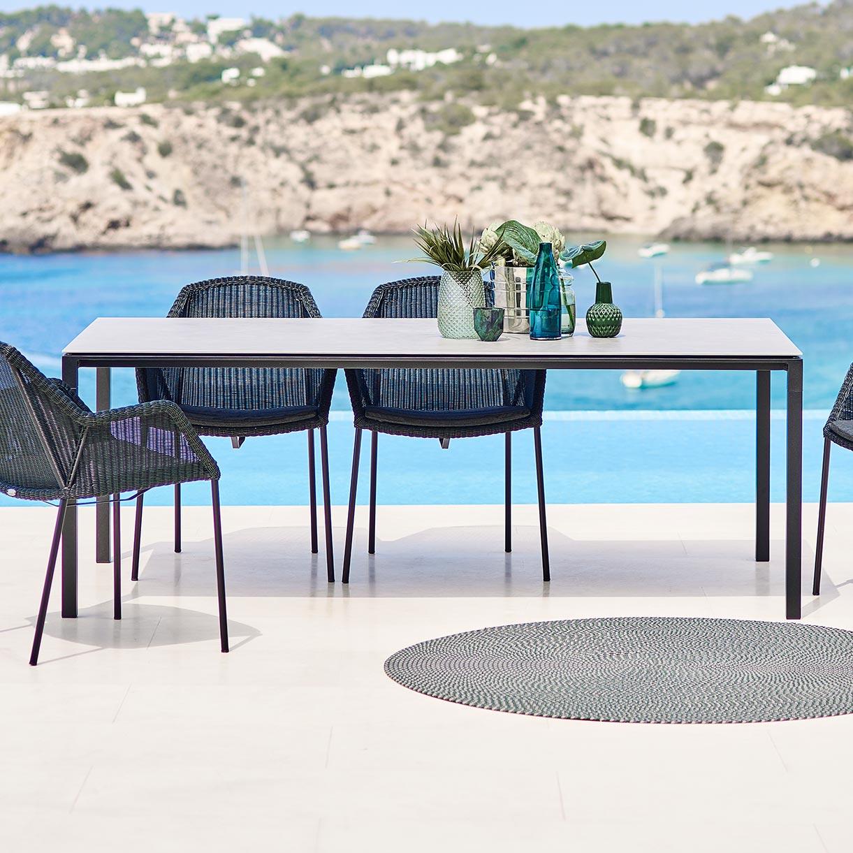 If you have space and need to cater for larger numbers from time to time, a Pure 200x100cm outdoor table and a smaller 100cm outdoor Pure table can be pushed together to create one large dining table.