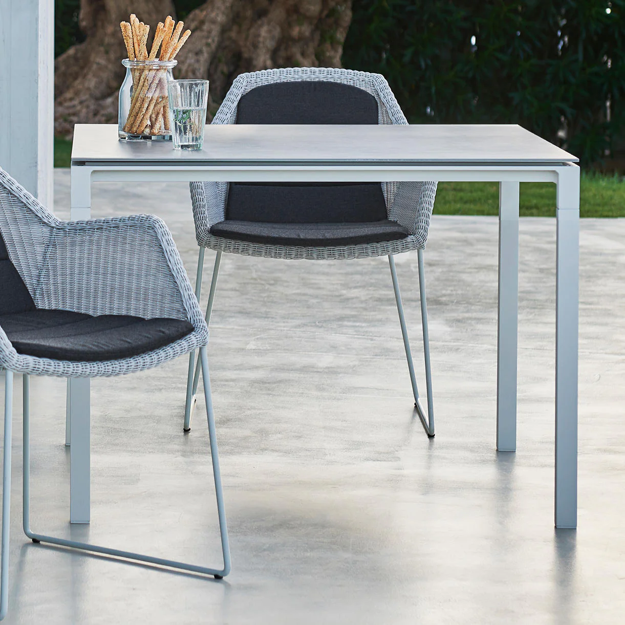 These square contemporary Pure dining tables have an aluminium frame and are complemented with a simple ceramic table top. The Pure tables by Cane-line are urban in style with clean stylised lines.
