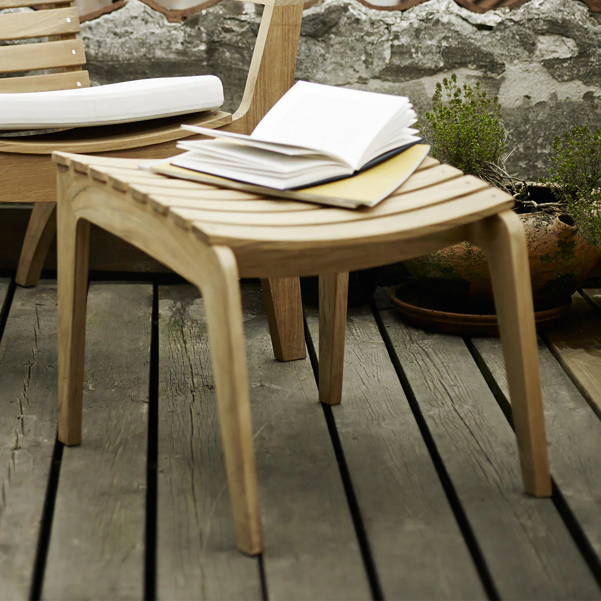 Designed for Skagerak in Denmark and made from solid teak slatted wood, this footstool complements the Regatta collection perfectly.
