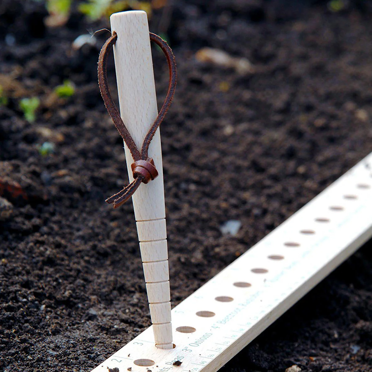 Use the dibblet with the 1m Seed Ruler for depth accuracy when planting seeds. The ruler can also be used to bat off irritating husbands, and squash yucky slugs.