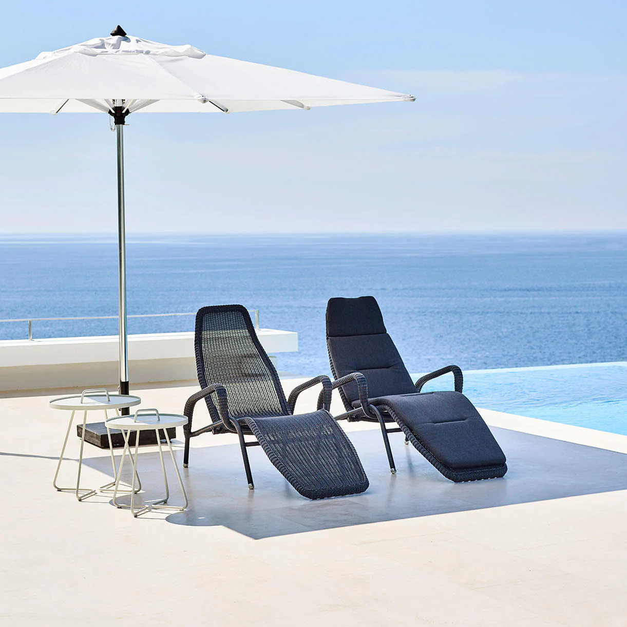 The Sunrise reclining sun chairs are shown in the main image accompanied by the On The Move tables.