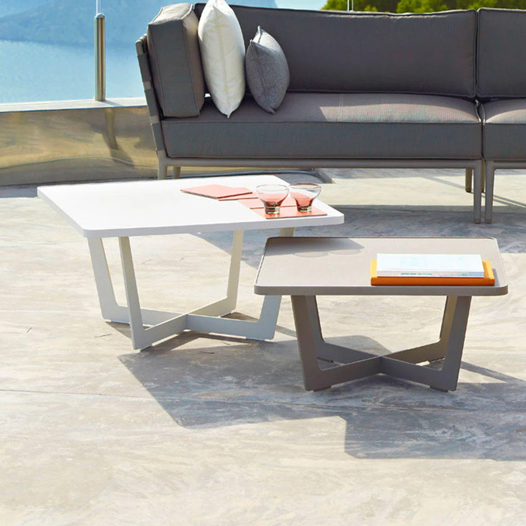 Time-Out coffee tables by Cane-line come in 2 sizes which can either be used separately or used a pair to stack together to create a larger nesting coffee table.