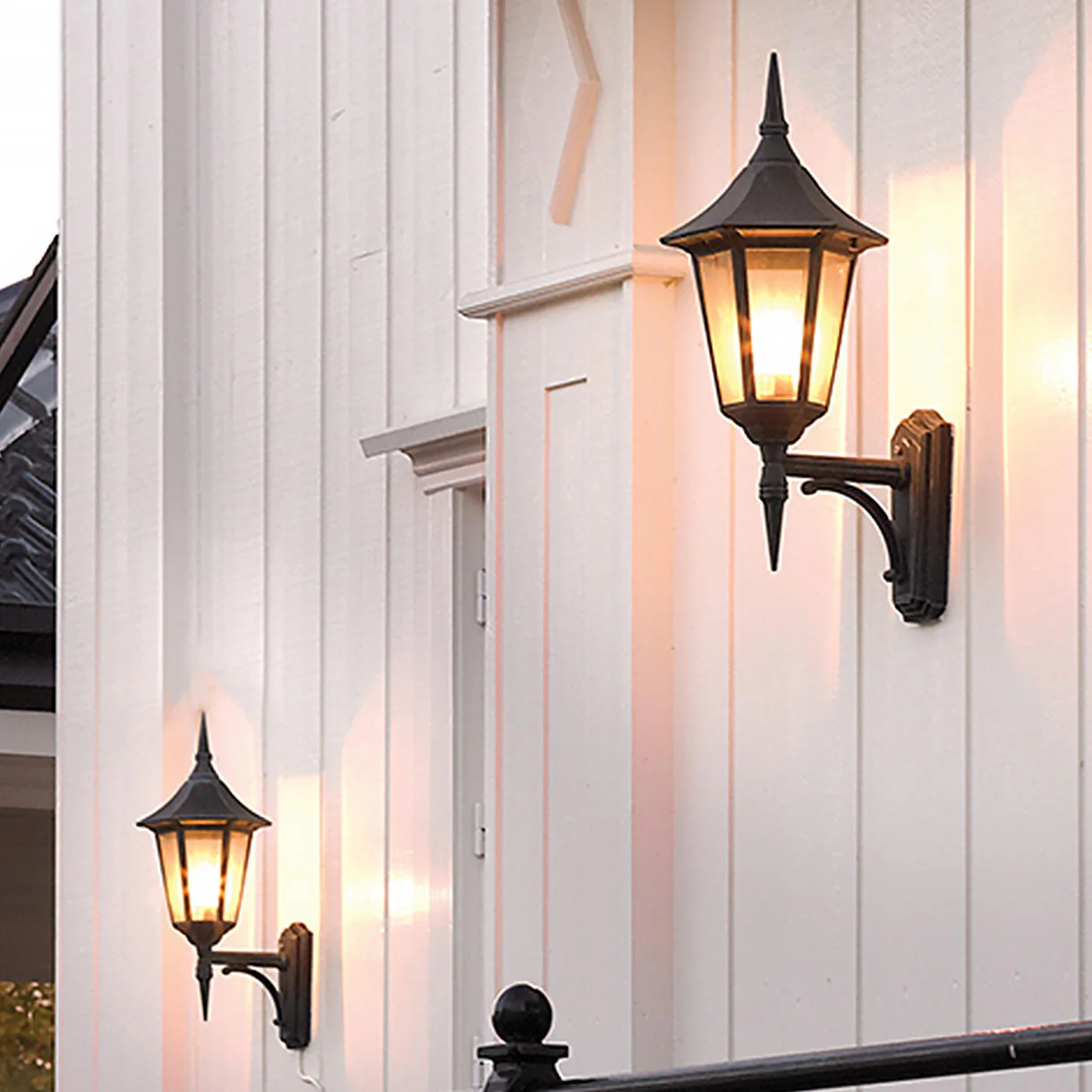 These die-cast aluminium lanterns comes with a black powder-coated finish and have a lightly tinted polycarbonate lens.