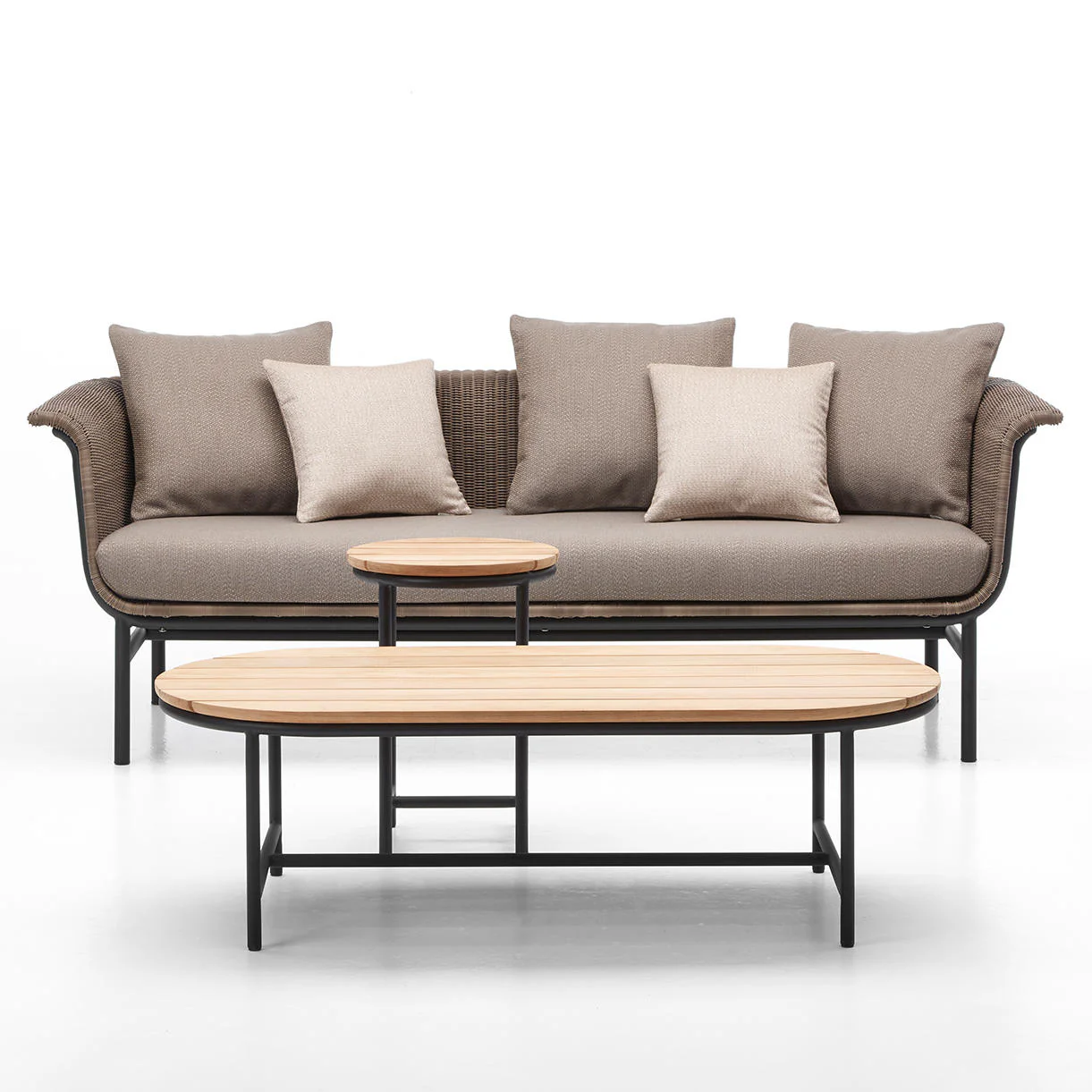 The soft curves of the 3 seater sofa allows you to relax in style and comfort. The combination of the warm wicker and the on trend powder coated aluminium frame allows a conversation between the craftwork on one hand and the industrial processes on the other.